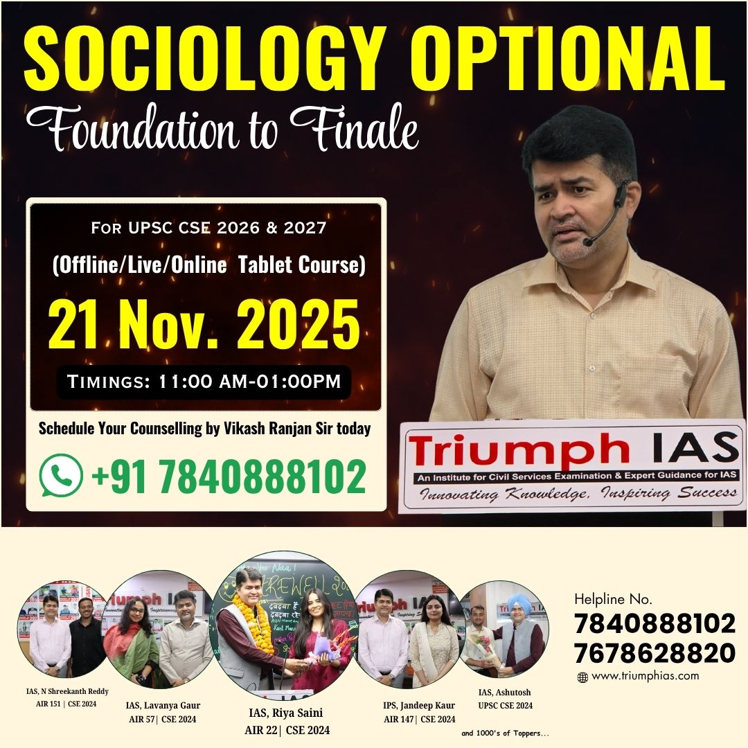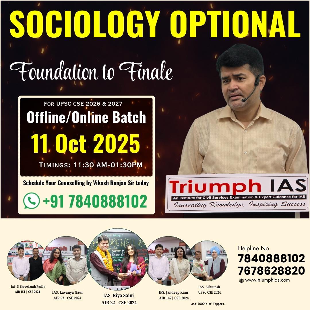 Choosing Triumph IAS and Vikash Ranjan Sir means choosing a structured, result-driven, and student-focused approach toward UPSC Sociology Optional preparation. With a strong record of success, innovative teaching methods, and continuous mentorship, this institution remains a top choice for aspirants aiming for UPSC 2026 triumph.
